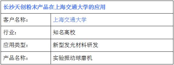 上海交通大學(xué)在天創(chuàng)粉末采購(gòu)一臺(tái)實(shí)驗(yàn)振動(dòng)球磨機(jī),用于新型發(fā)光材料球磨實(shí)驗(yàn)研發(fā)。