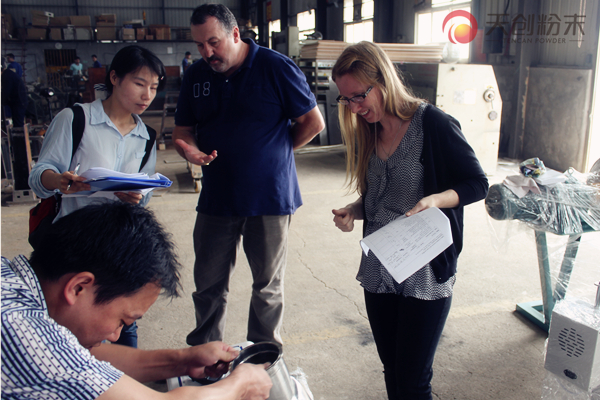 客戶對天創特有的多維萬向混料機很感興趣