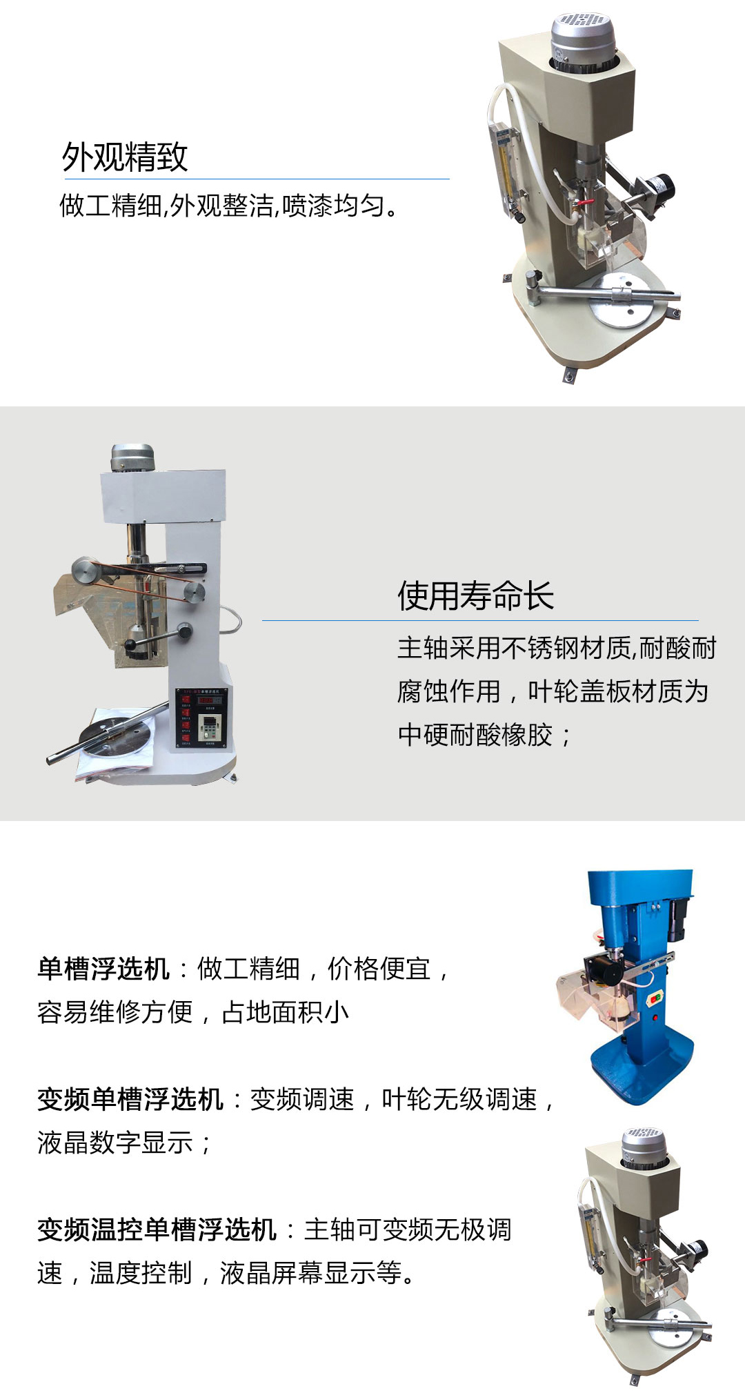 變頻單槽浮選機:變頻調速,葉輪無級調速,液晶數字顯示;