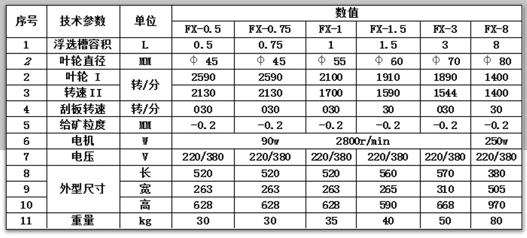 、實驗浮選機參數介紹